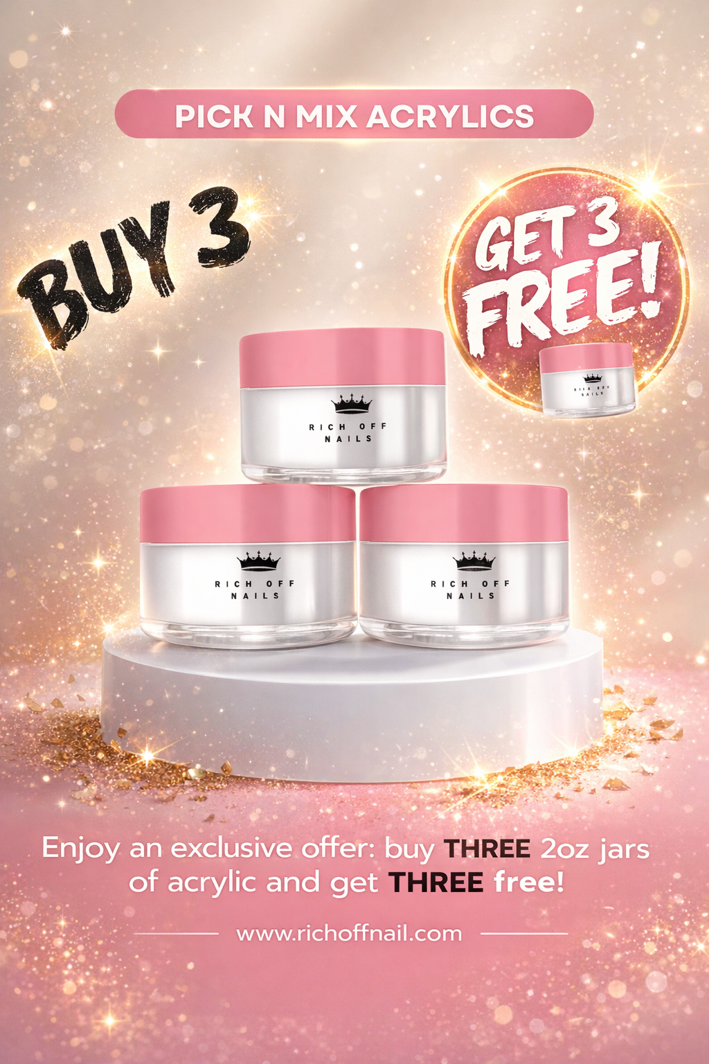Purchase three premium powders to get THREE free 2oz acrylic cover.